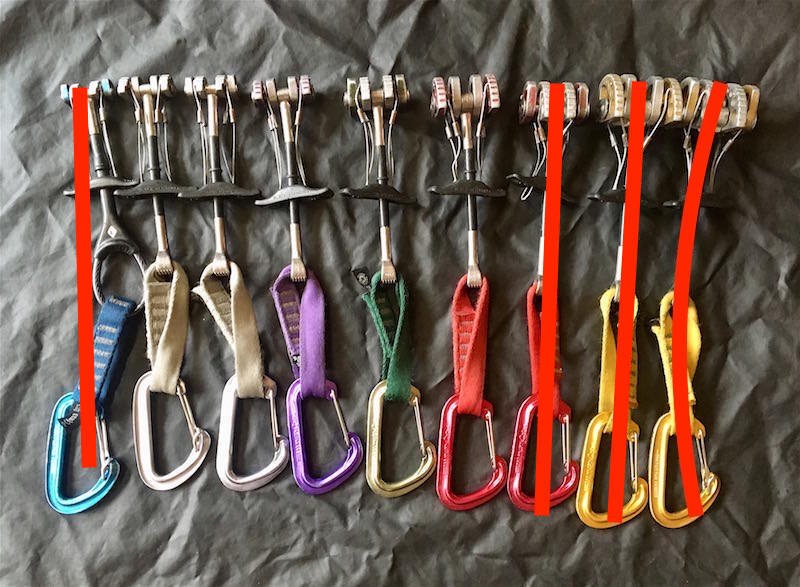 all with dedicated biners, mostly colour-coded. See photo below.